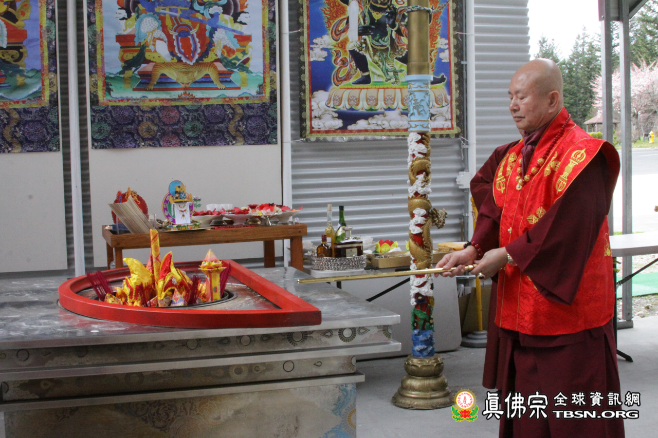 2020年4月5日下午,美國真佛宗西雅圖彩虹雷藏寺恭請根本上師蓮生活佛主壇四臂觀音及地藏王菩薩護摩大法會。四臂觀音就是藏傳的觀世音菩薩,而西藏也即是四臂觀音的人間道場;地藏王菩薩是幽冥教主,淨土為翠微淨土,中國九華山是祂的人間道場。