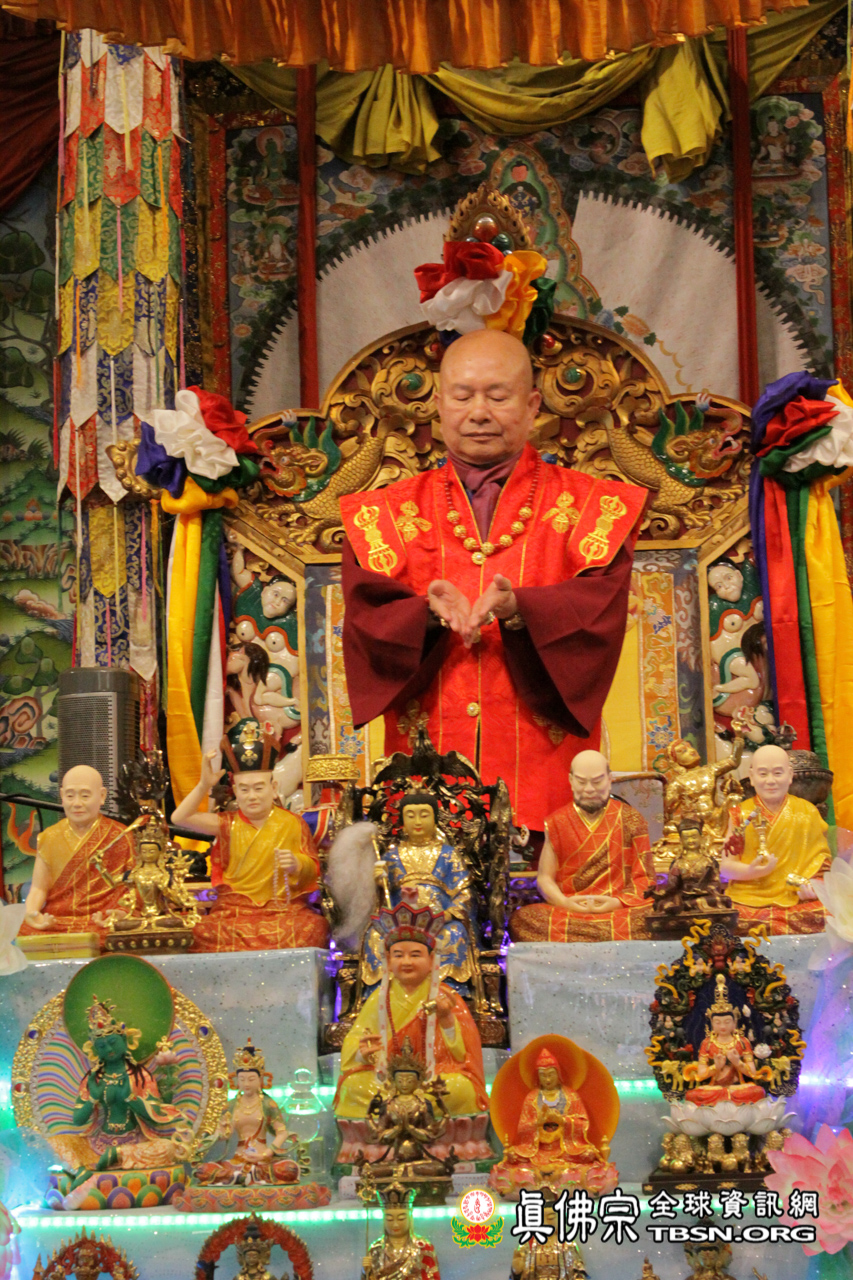 由於防疫方針,全球真佛弟子只能在網路上看到法王,「現在大家都可以看到我,師尊用眼睛一看,也看了好幾千萬的弟子,在聽師尊說法」,法王告訴大家,昨晚修法時和臨睡的時侯修法,看到阿彌陀佛、觀世音菩薩,另外,特別看到綠度母,「可見綠度母、除瘟疫度母、二十一度母來支持我們今天的護摩,所以綠度母經常都是幫助我們的」。