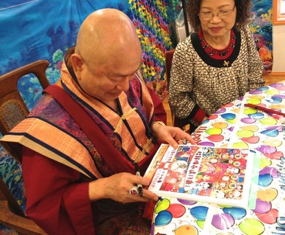 17日晚,由《宗委會》 釋蓮寧上師恭呈所有持咒弟子的名單及總遍數供養 師尊,並轉達弟子們「請佛住世」的熱烈之心,師尊看了以後很感動,也很感謝所有弟子的虔敬之心。師尊立即將所有持咒名單及總遍數的「請佛住世圖」放在天心加持,迴向十方法界,同霑法喜,並慈悲賜下親筆簽名!