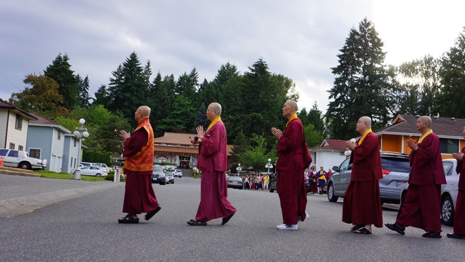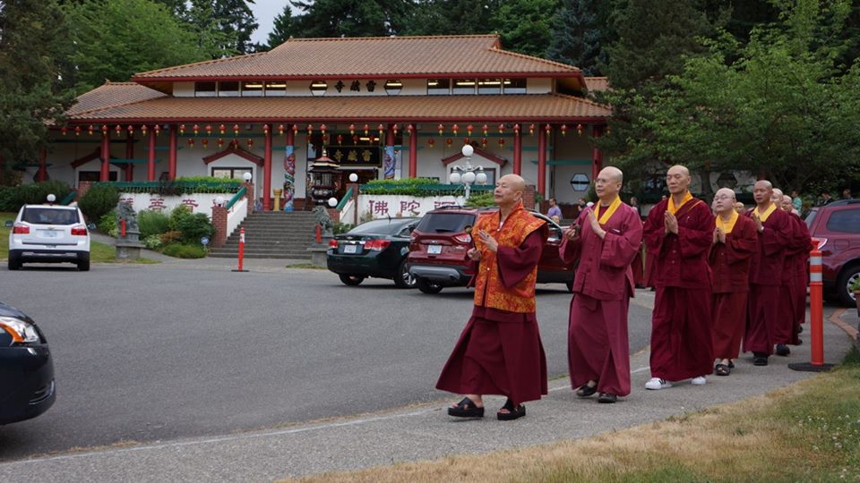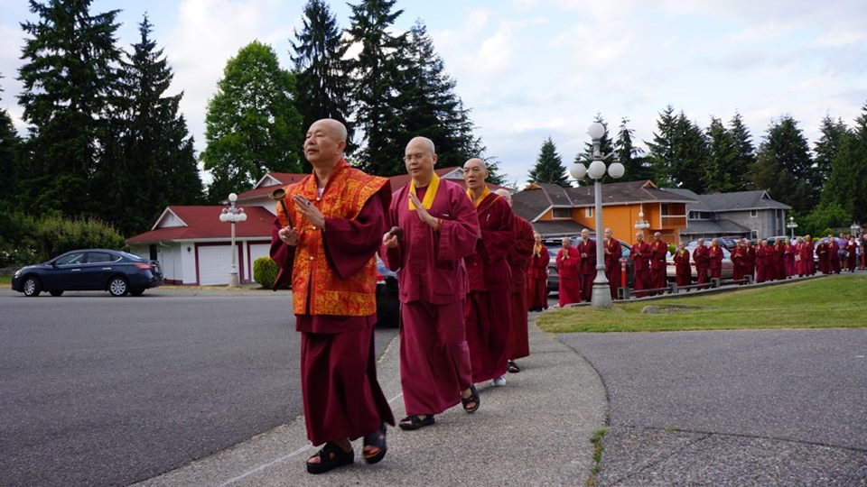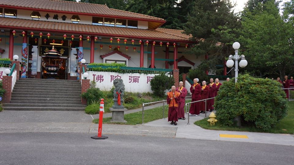 在此與大家分享,美好西城的天空下,蓮生活佛 盧師尊帶領眾弟子在〈西雅圖雷藏寺〉繞佛的情景;看著照片,耳邊彷彿還迴盪著師尊唸佛的聲音:南~摩~阿~彌~陀~佛…