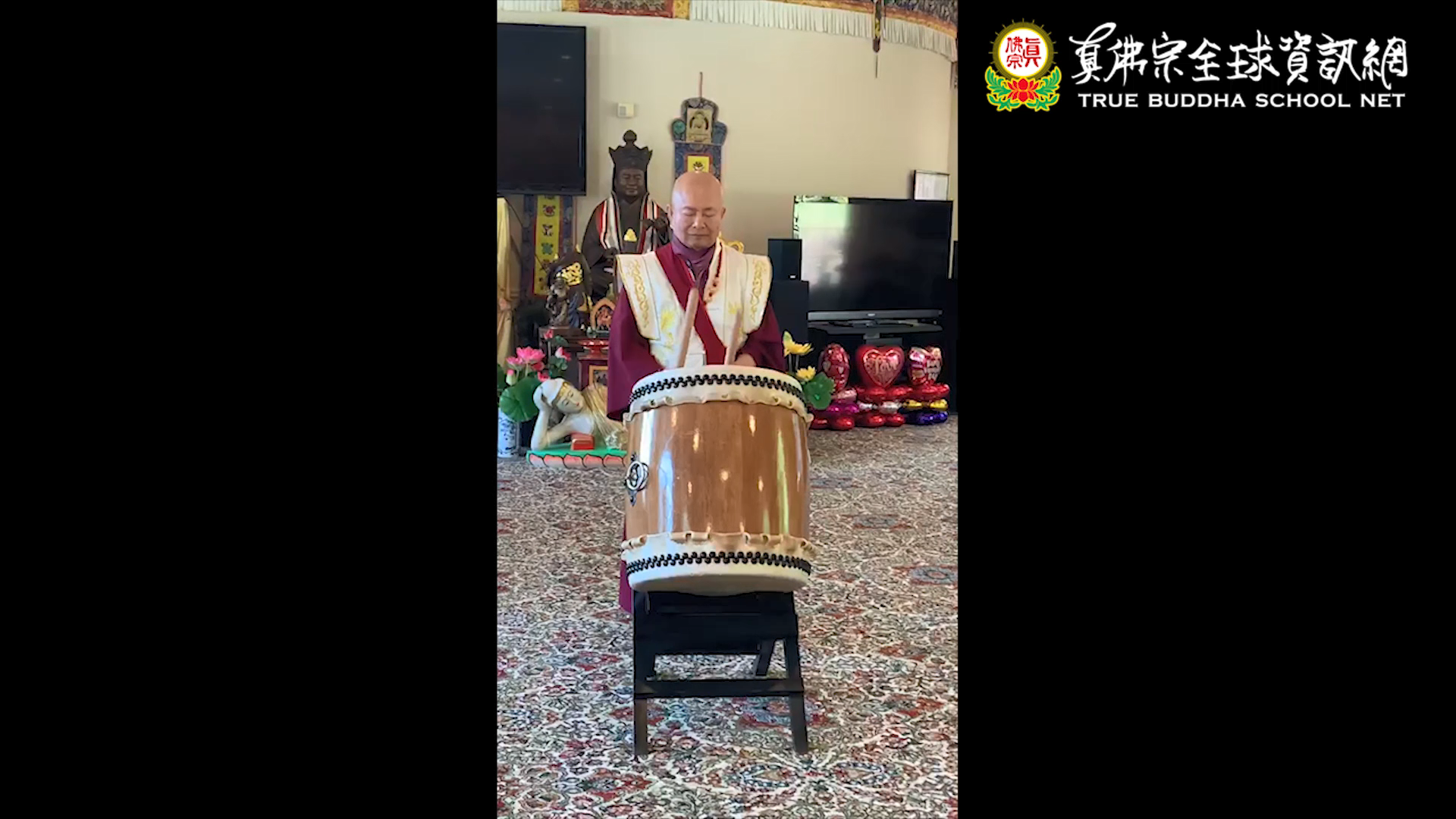 護摩法會結束後,師尊來到大殿打鼓,師尊的鼓技精湛,聲聲觸動人心,有時像是潺潺溪流,娓娓道來的鼓聲節奏,時而又是排山倒海,氣勢磅礡的雄偉鼓樂。彷彿可以乘著師尊的鼓聲,心靈自由自在的十方徜徉,將許多的煩憂暫時拋諸腦後。