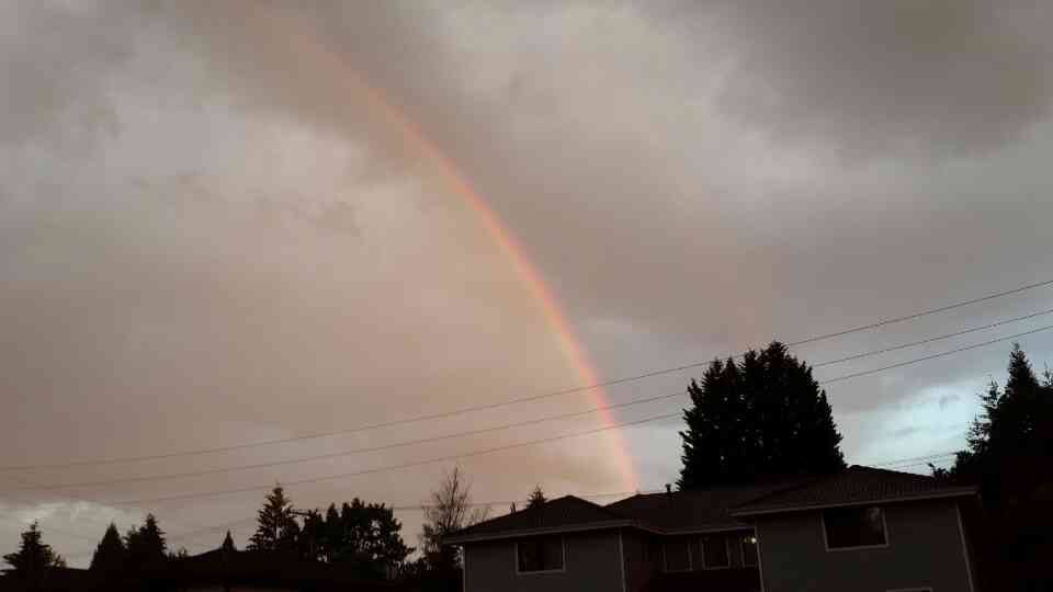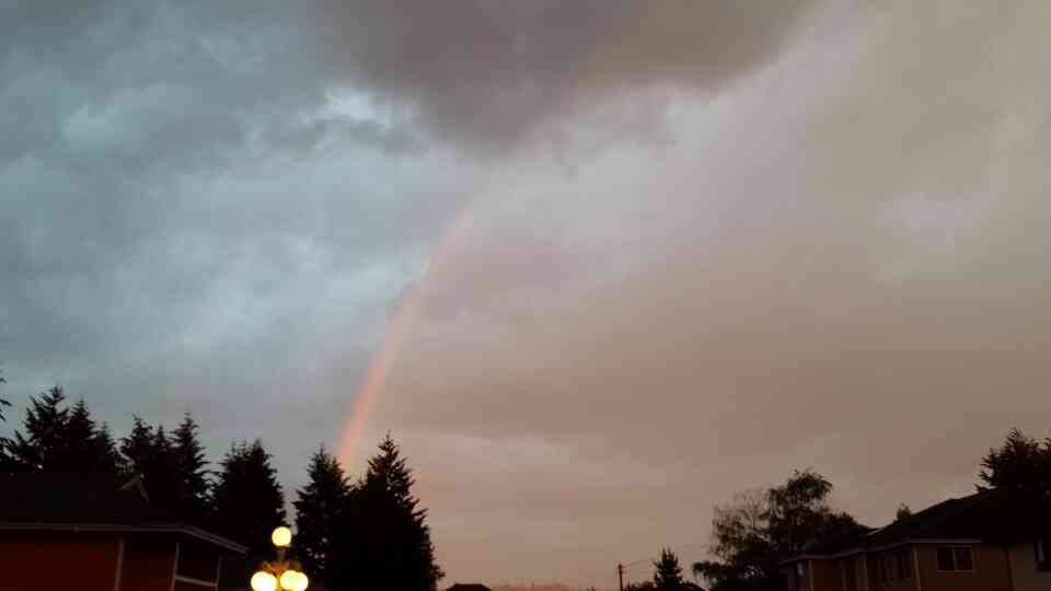 一為,師尊讚嘆西雅圖的雲層特別美,一時,天現二道大彩虹,更添炫麗。