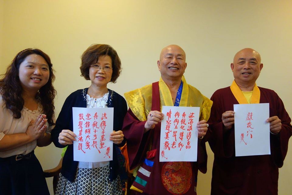 5月21日蓮生活佛 盧勝彥返美前,受邀至〈法舟堂〉位於楊梅新建的閉關中心點地,指點此地為「獻花穴」,並賜予墨寶。