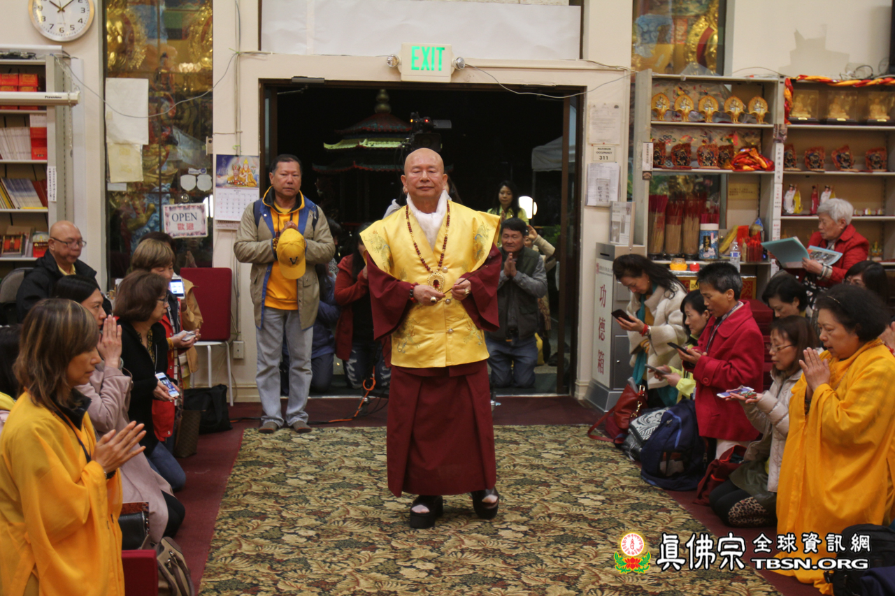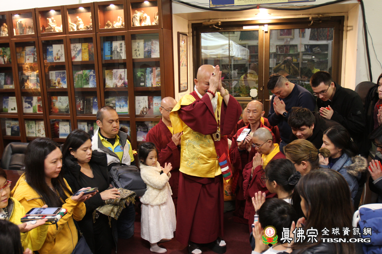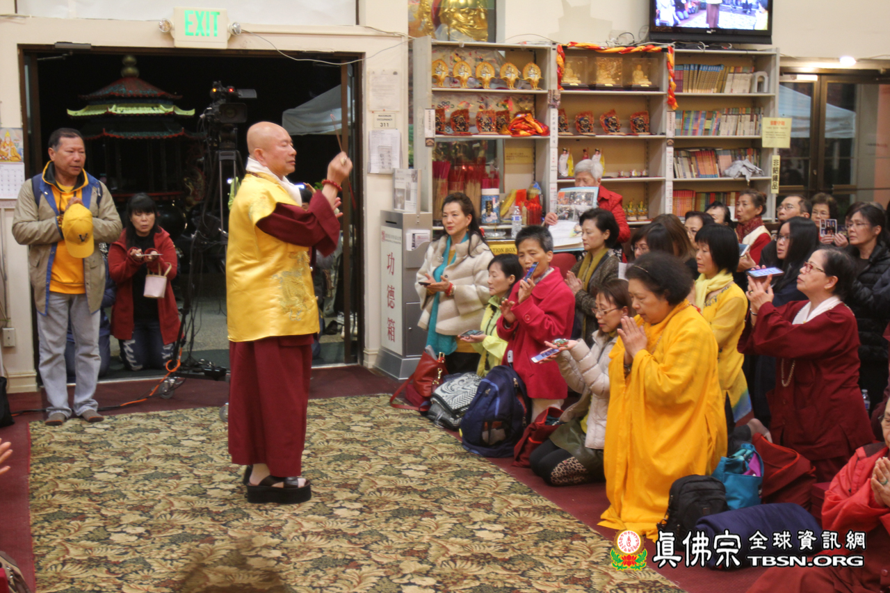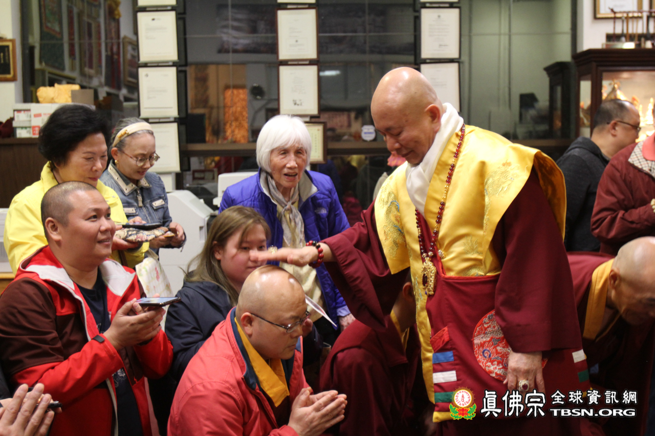 開示結束後,聖尊賜授皈依灌頂、加持大悲咒水和佛像開光。臨行前還慈悲一一為每位善信摩頂加持。雖今日氣溫比較低,但今晚與佛同修,得到佛光注照的加持,讓每個人的心中都暖暖的,充滿了光明!