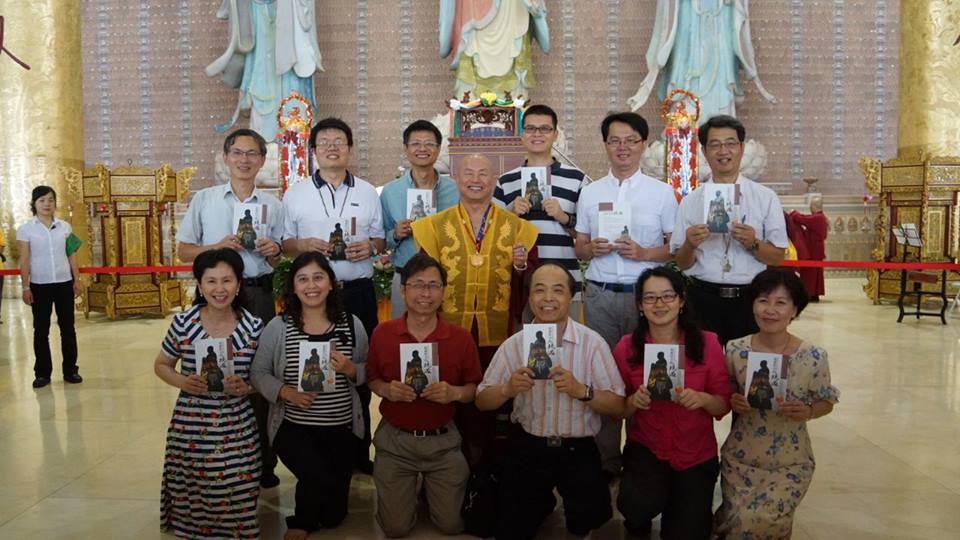 蓮生活佛 盧勝彥與《大專活力成長營》學員、義工與《真佛宗博士教授團》在西方三聖大殿前合影留念