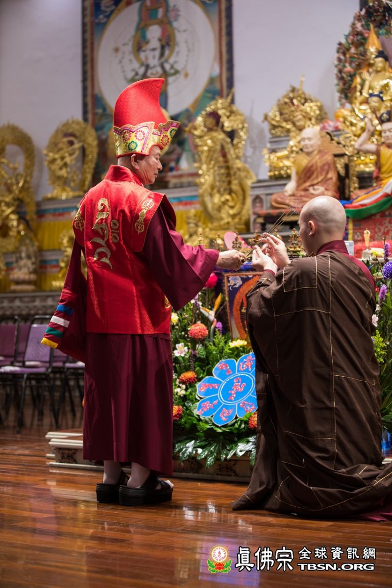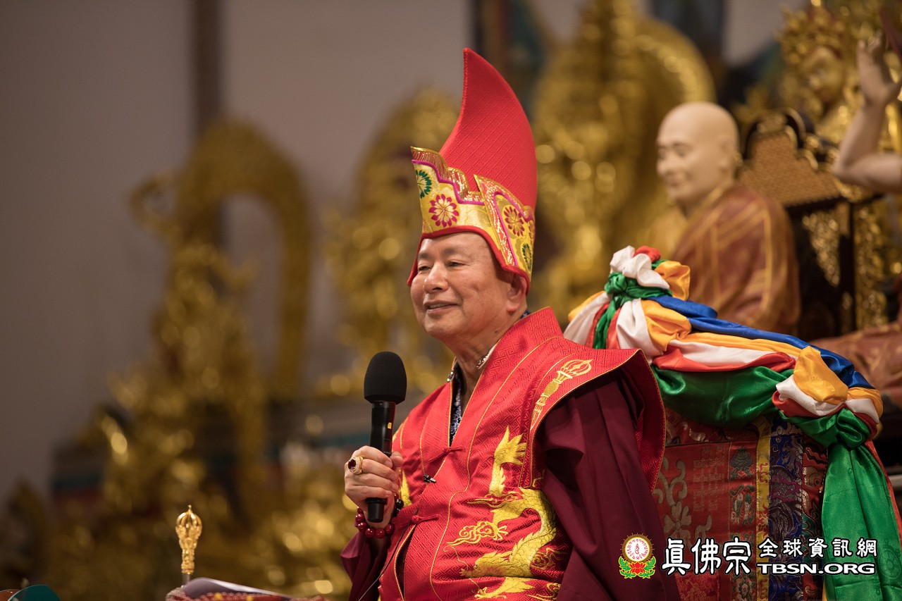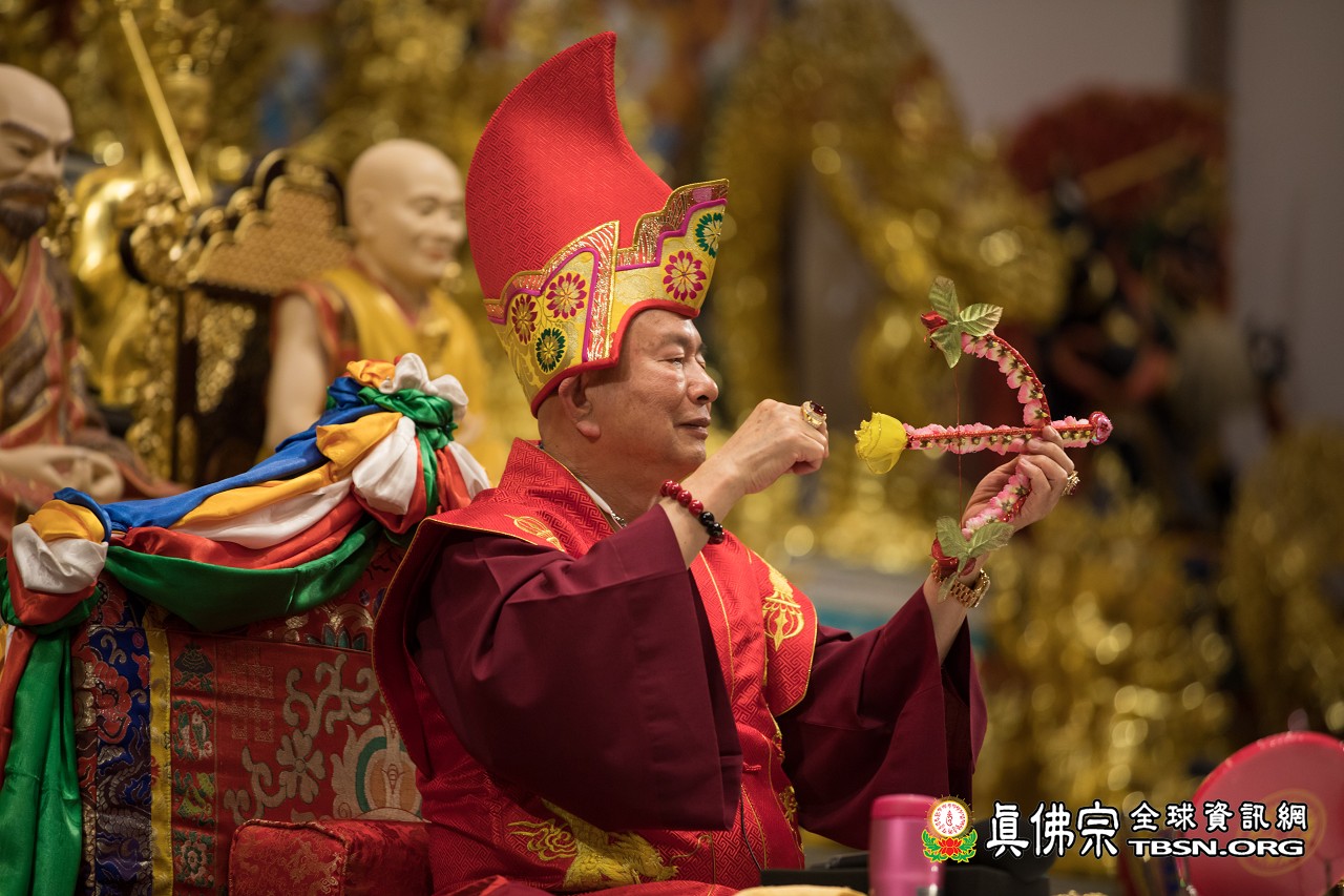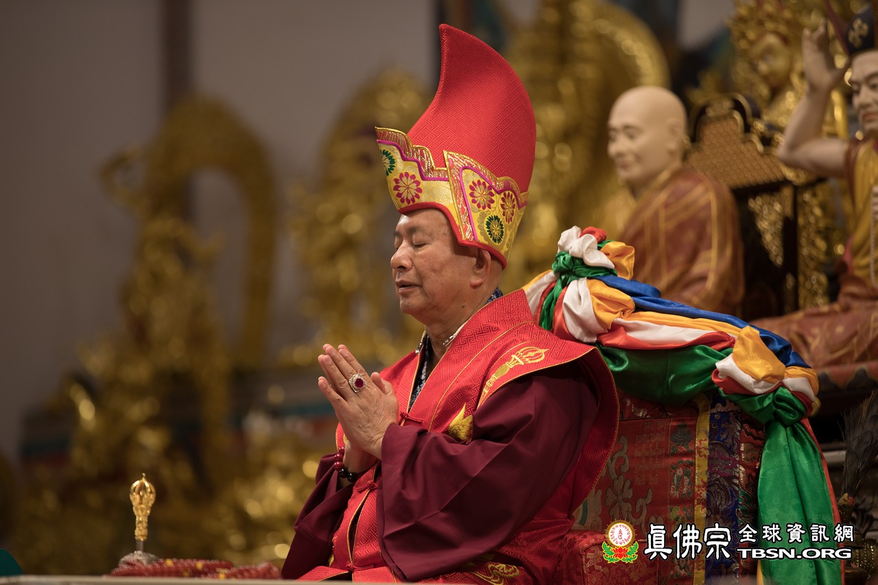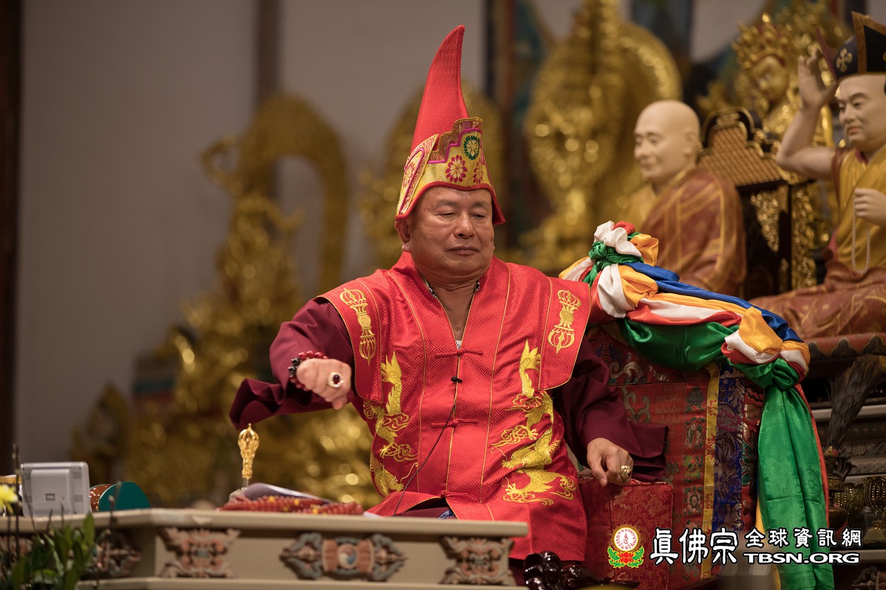 「行者絕不可放棄自己修行的本尊」,法王再度叮囑,「一日要憶念三次,當衪知道你想念衪,衪一定會跟你相應」。最後,法王慈悲賜授殊勝「咕嚕咕咧佛母不共大法、十方射箭法」灌頂,法會圓滿吉祥,紅光遍佈十法界。