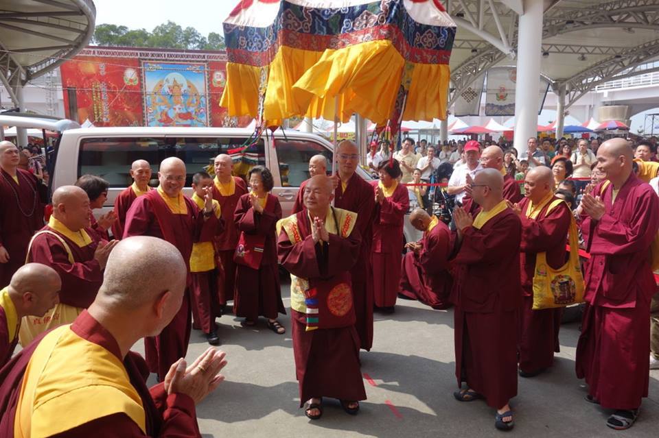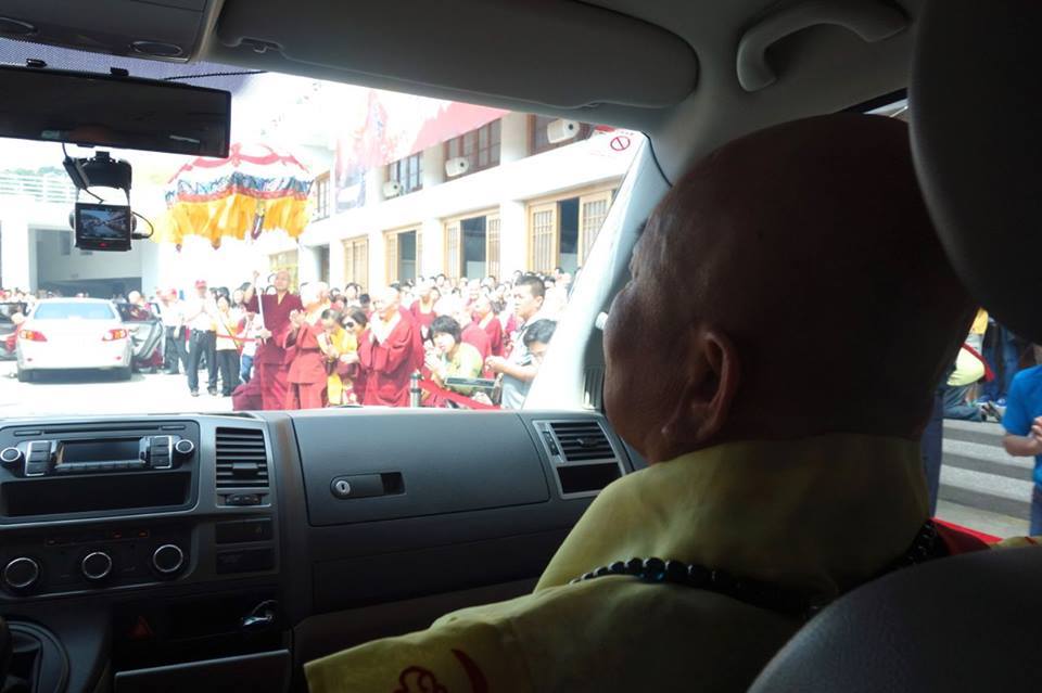 下午一點四十分左右,蓮生活佛 盧勝彥蒞臨〈台灣雷藏寺〉受到上萬信眾熱烈歡迎。
