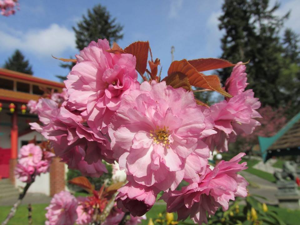 「摩利支天菩薩」是大日如來「毘盧遮那佛」的化身,有隱形自在的大神通力,是帝釋天的眷屬,常隨日天,在前疾走!所以近日全台灣也常感受到「大日普照」,熱烈上升的氣溫。然而,近日的西雅圖亦是一片風和日麗,百花齊放,尤其是紅櫻花、白櫻花、鬱金香爭奇鬥豔;而在「真佛密苑」門口還能見到小松鼠的蹤跡哦…。