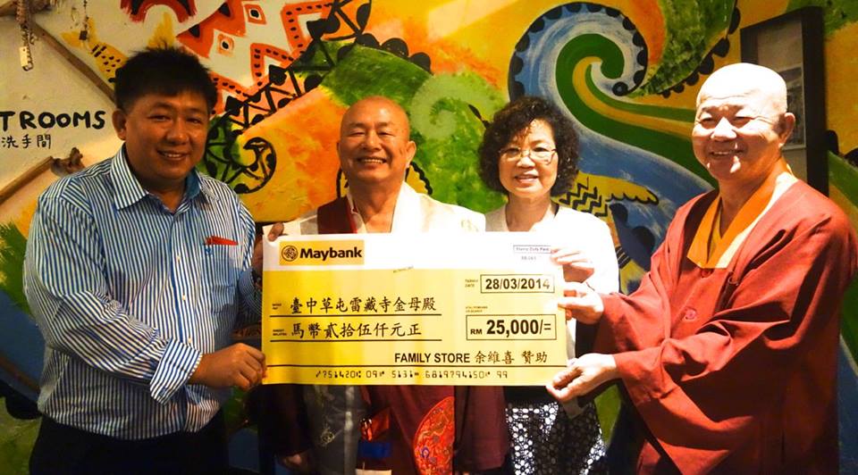會後,並贊助〈台灣雷藏寺〉「金母殿」(由 蓮傑上師代表接受);以及捐贈〈盧勝彥佈施基金會〉,願拋磚引玉,響應佈施行善之舉。