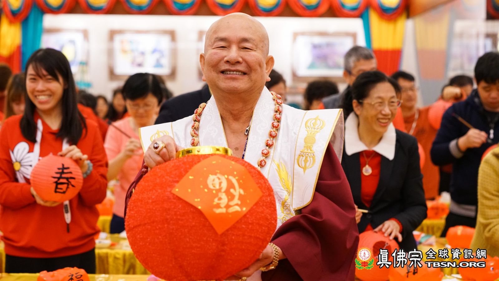 蓮生活佛亦題了春條,寫下「佛光注照」四字賜福大眾,並接受電視媒體的聯合訪談。師尊先解釋題此四字的涵義,正是希望佛光注照整個台灣,有佛光注照,讓台灣能得到祥和,跟一切的平安。而今天要發放的護牌,是由「大力金剛」作為主尊,大力金剛祂有力量能消災解厄,因此這個護牌的作用,正是息滅所有的災難,解掉本身的厄運。