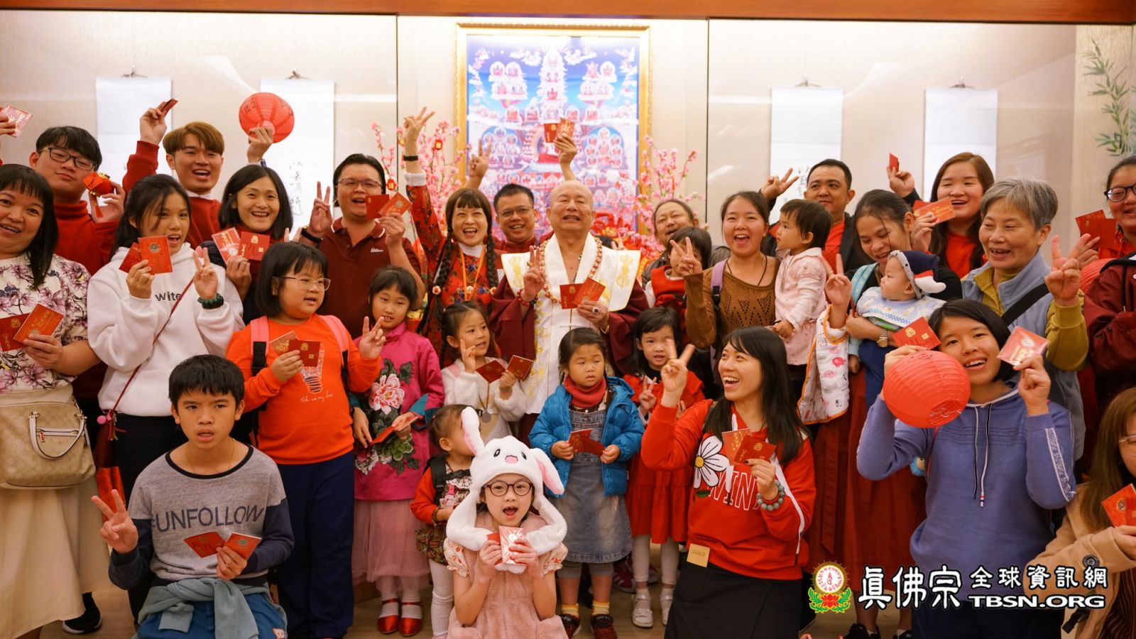 最後,蓮生法王應記者之請為台灣祈福:希望這個豬年,國家整個命運,諸事如意,逢凶化吉,人民和祥,經濟發展;採訪於此告一段落。媒體聯訪結束後,師佛開始發放「大力金剛開運護佑祈福護牌」和「豬年開運吉祥紅包錢母」,領取到護牌和錢母的弟子各個都歡喜鼓舞,感恩頂戴。願所有善信在新年第一天皆獲無上法王和諸佛菩薩的大加持,悉皆滿載而歸,健康平安一整年!