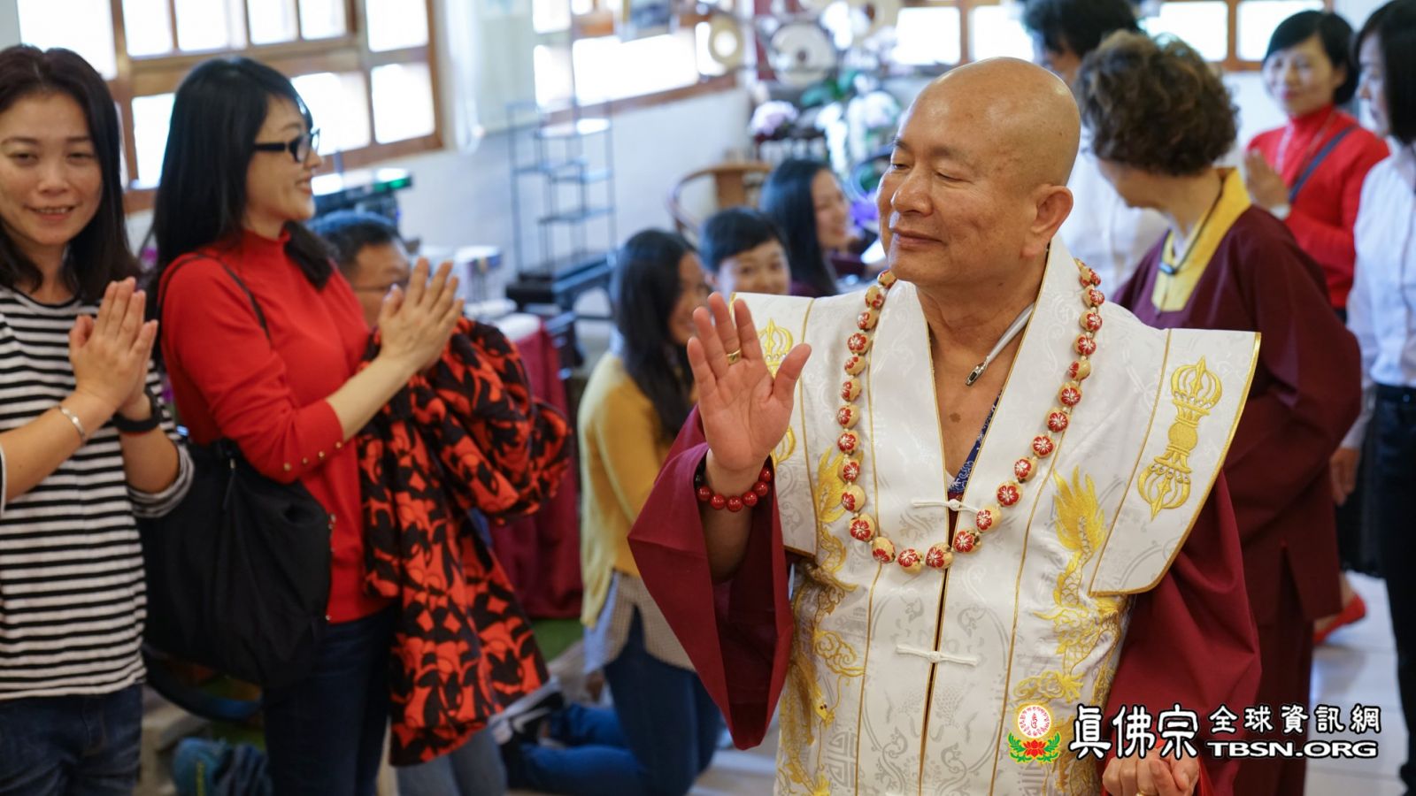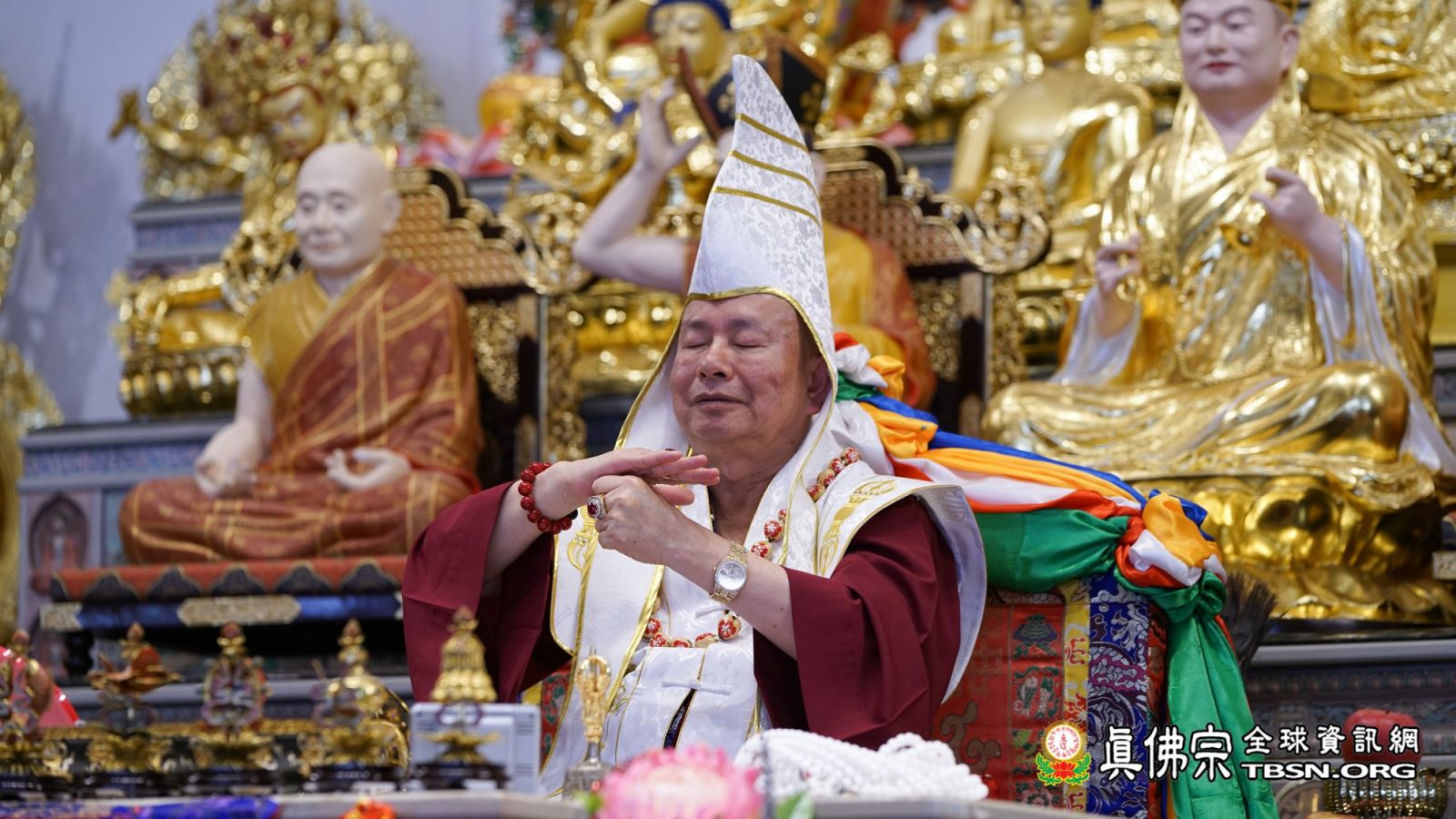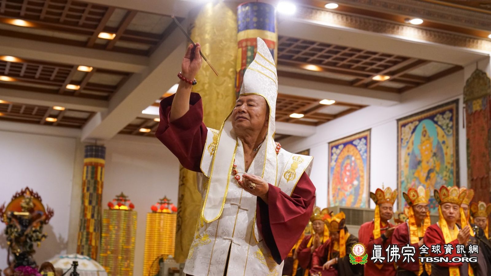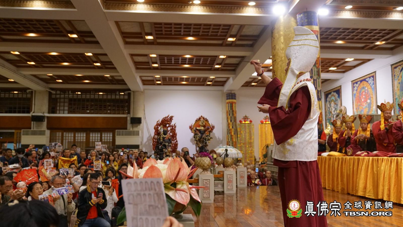 「大紅燈籠高高掛」,2019年02月05日,是中國年大年初一,台灣雷藏寺恭請當代法王蓮生活佛盧師尊主壇南摩彌勒菩薩護摩大法會。當日,艷陽高照,來自世界各地的各級弘法人員、貴賓、善信大德擠滿雷藏寺,皆是前來護持法會,與佛共度新春佳節。法王和師母蓮香上師於當日上午和弟子們一起摺金元寶,在紅燈籠和紅豬撲滿上寫「福」、「滿」、「吉」、「祥」等字,庇佑所有四眾弟子吉祥如意、平安吉祥。
