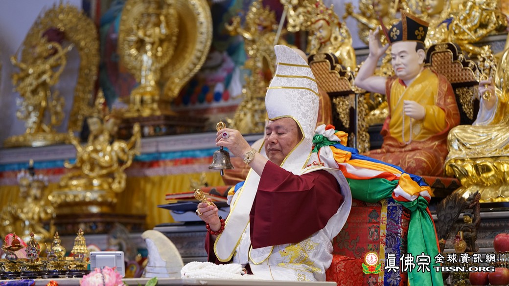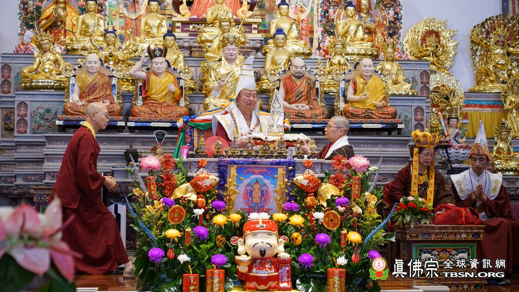 恭聆法王的寶貴開示後,法王慈悲賜授殊勝的「彌勒菩薩不共法、彌勒白雲觀」灌頂,法會吉祥殊勝,新年好彩頭!
