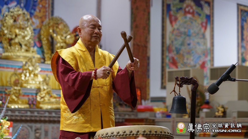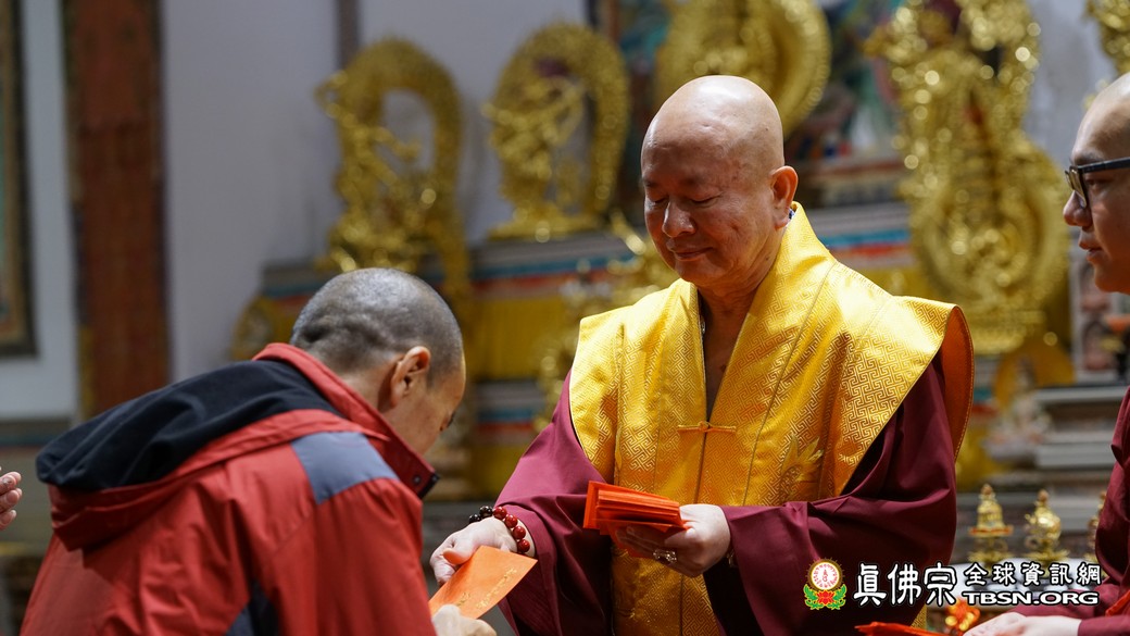 整個活動最高潮是由師尊敲「吉祥鼓」與打了一套「金剛棍」加持與會弟子。隨後,師尊親自發送紅包給與會的每一個弟子,人人幸福滿溢。相信在師尊的賜福下,紅豬年將會是諸事大吉,福慧增長豐收的一年!
