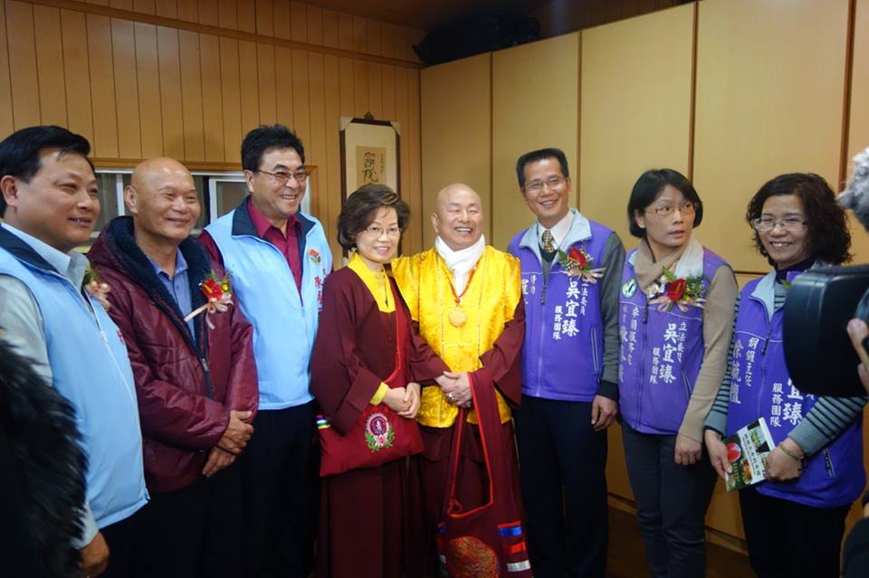 師尊、師母與三義鄉長、大湖鄉長、立委代表…等歡喜合照。