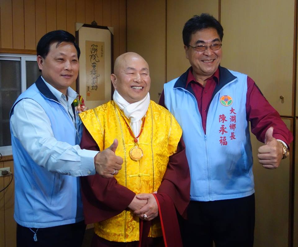師尊與今日貴賓三義鄉長、大湖鄉長合照,貴賓還特別比出「讚」!