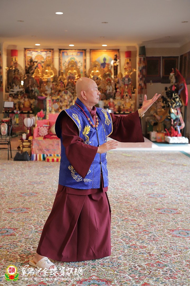 回到大殿之後,師尊提議要運動一下,於是師尊打了一套太極拳練身,也加持大家。師尊氣沉丹田,將一套太極拳打得剛柔並濟,拳法有如行雲流水,氣、神、形融為一體,進退旋轉清靈圓活,頗有大家之風範。
