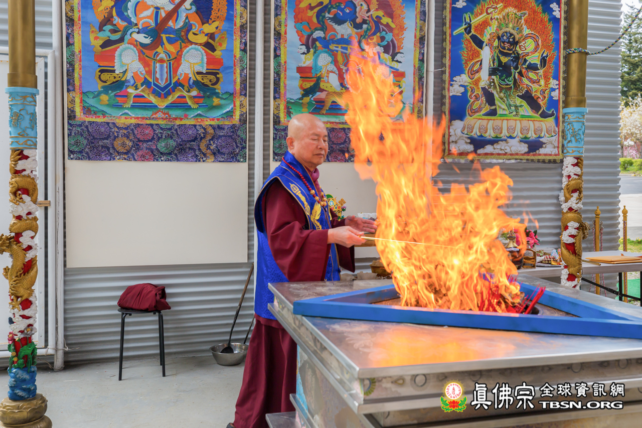 2020年4月19日下午,美國真佛宗西雅圖彩虹雷藏寺恭請根本上師蓮生活佛主壇救天災度母護摩大法會。法王於2019年4月28日應台灣南部大義學會之邀請,假高雄展覽館主壇「救天災度母護國祈福大法會」暨首傳及賜授「救天災度母不共大法」灌頂祈救天災度母能慈悲守護行者、護佑台灣,風調雨順、國泰民安。救天災度母身綠色,右手結「無畏施手印」,左手持著烏巴拉花,花上有十字金剛杵,表示降伏一切魔怨及障礙,但凡金剛杵淨光所照之處,能化解地、水、火、風等災難,使大地國土清淨光明。其外相為右足伸展,左足內踡,其意義是:右足伸展則表示其具大慈悲心,不離三界去救護眾生;而左足內踡則表示其住於智慧之空性當中,坐蓮花座。身飾天衣,種種寶飾,背有月光。頂飾阿彌陀佛,為密教二十一度母之一。