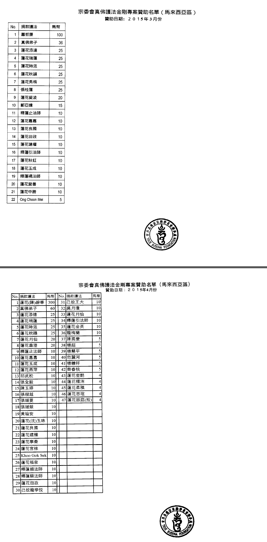 聖尊蓮生活佛 盧勝彥法王慈悲加持2015.1.1 ~4.30【真佛護法金剛榜】贊助者名單【真佛護法金剛榜】贊助者名單,所有名單已恭請師尊加持。