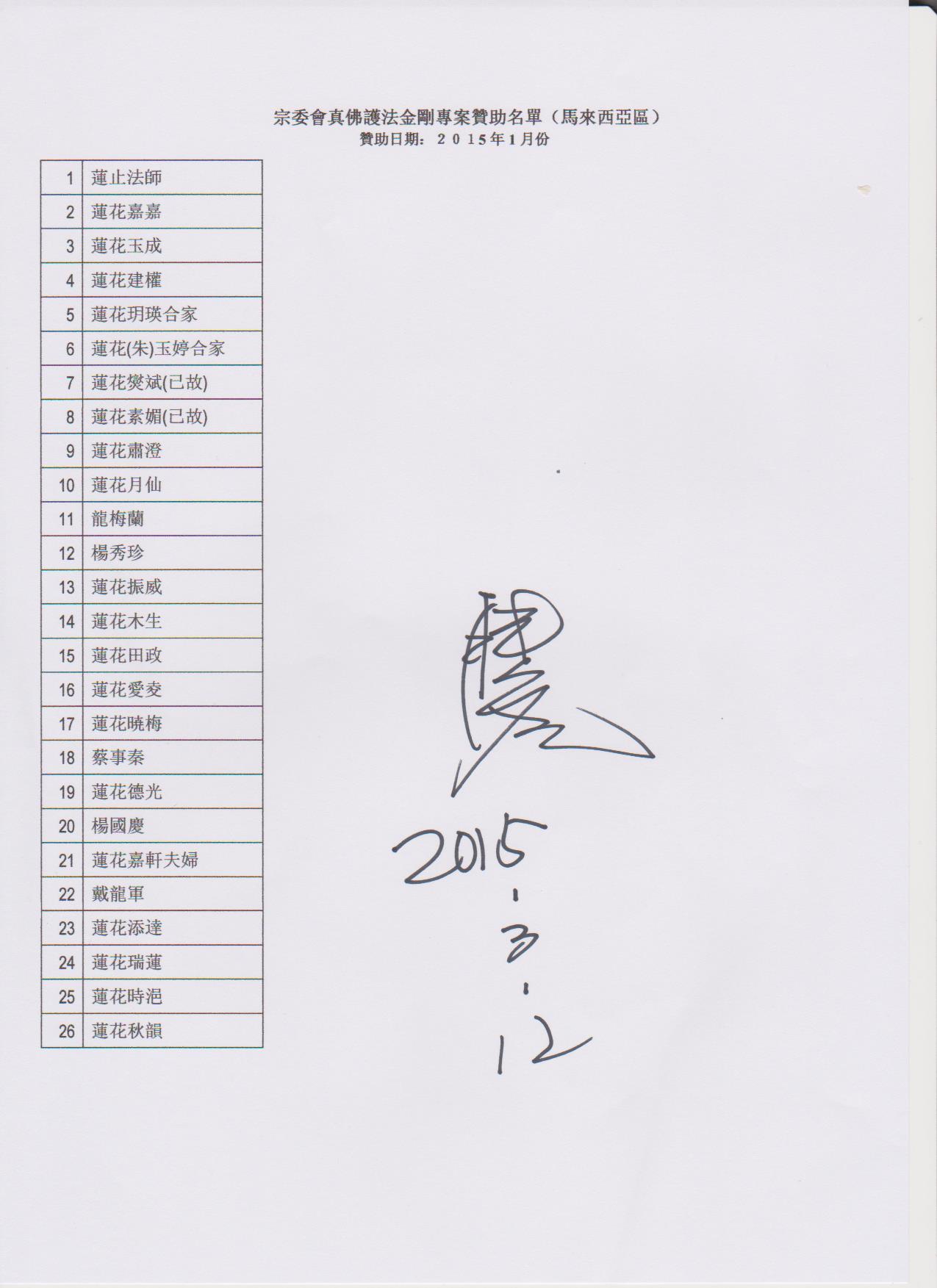 聖尊蓮生活佛 盧勝彥法王慈悲加持2015.1.1 ~2.28【真佛護法金剛榜】贊助者名單【真佛護法金剛榜】贊助者名單
