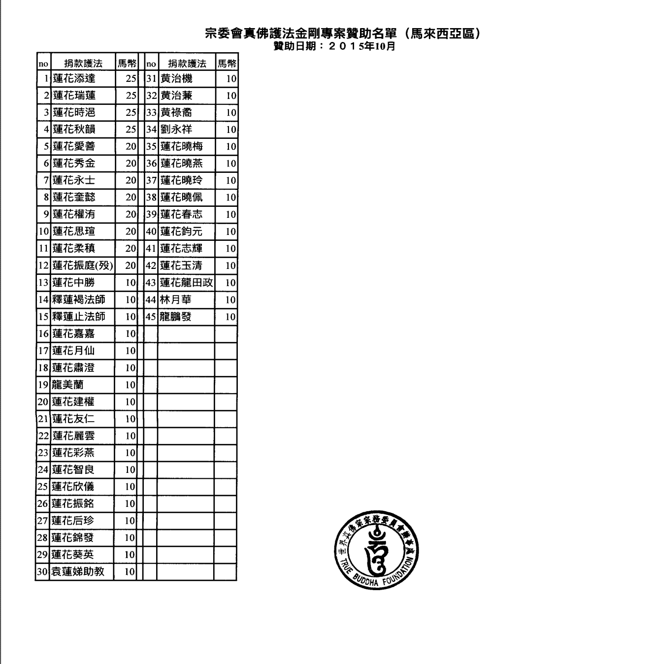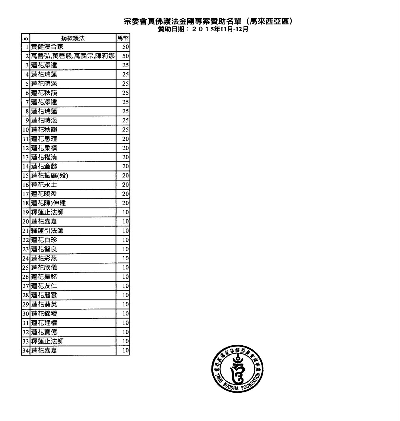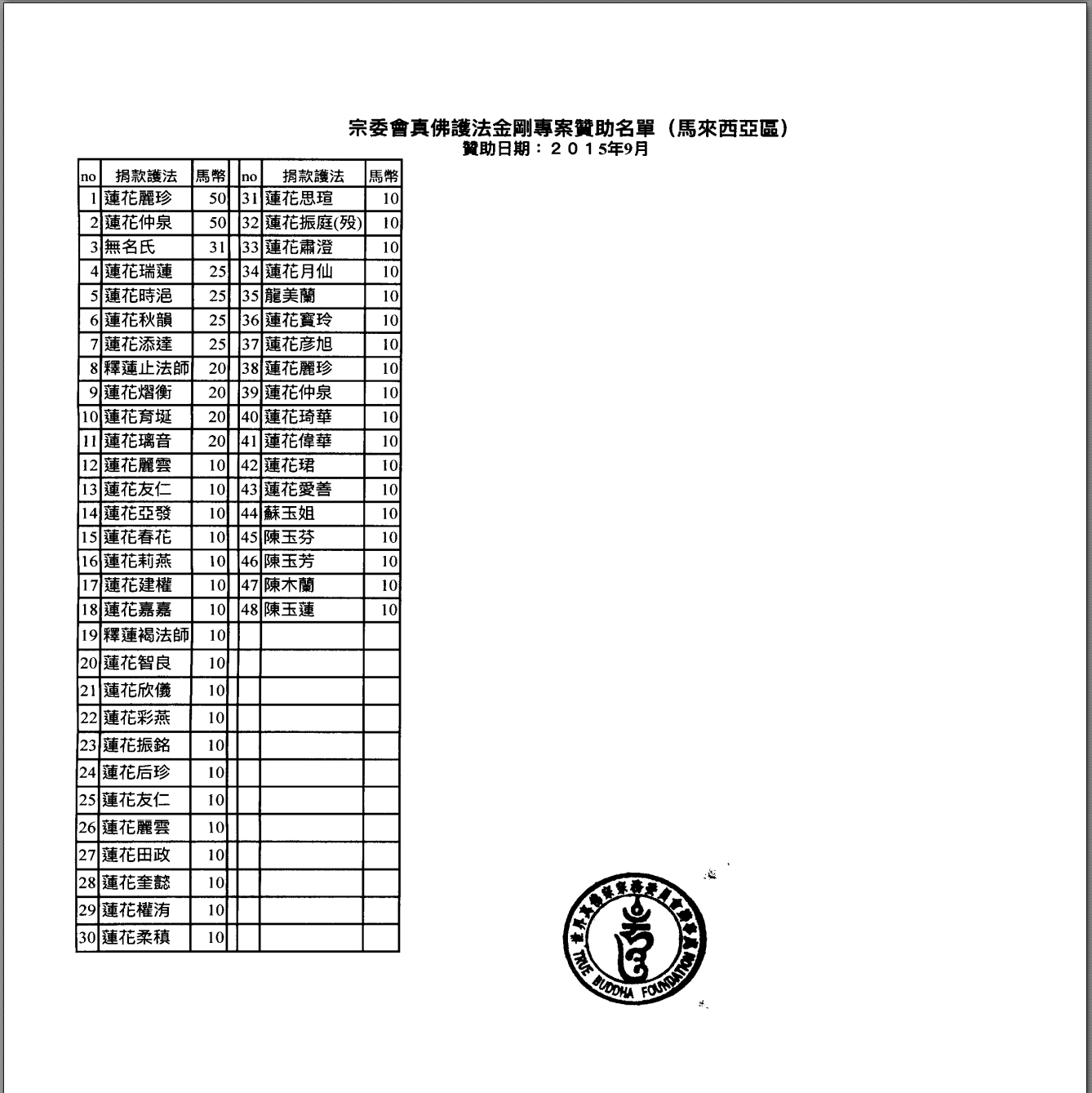 【真佛護法金剛】感恩 蓮生活佛 盧勝彥法王慈悲加持2015.9.1 ~ 12.31【真佛護法金剛榜】贊助者名單