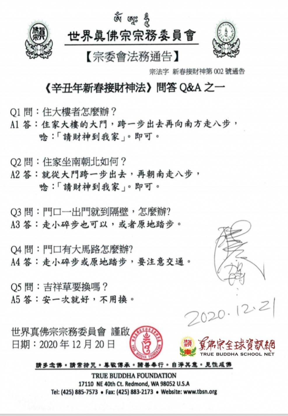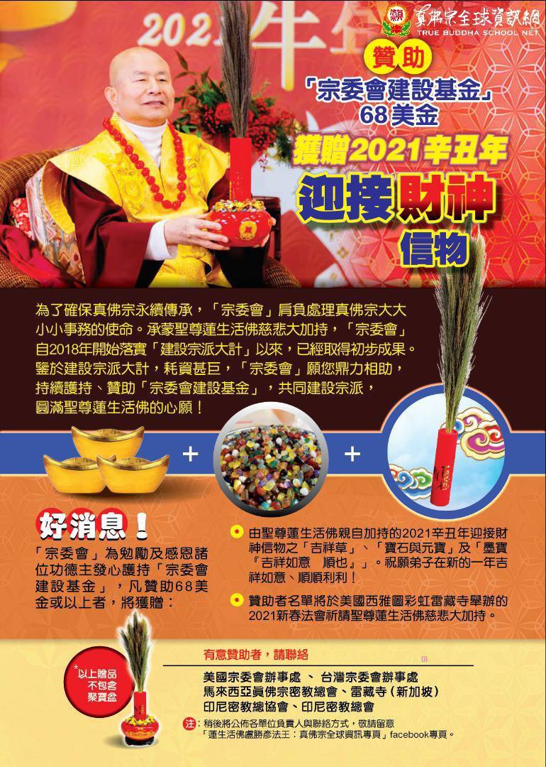 法王 蓮生活佛傳授2021辛丑年新春「接財神到我家」