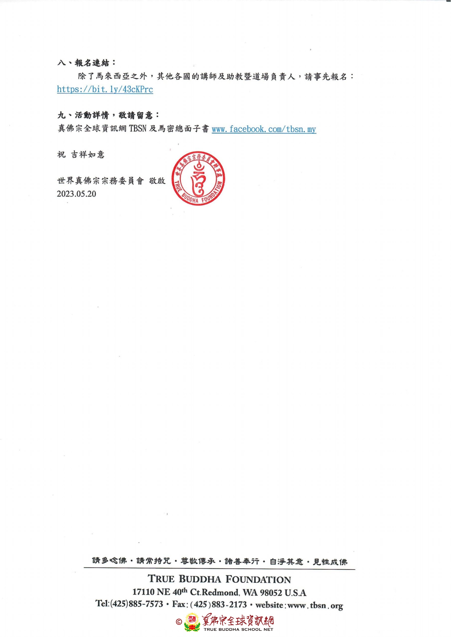 除了馬來西亞之外,其他各國的講師及助教暨道場負責人,請事先報名名:https://bit.ly/43cKPrc
