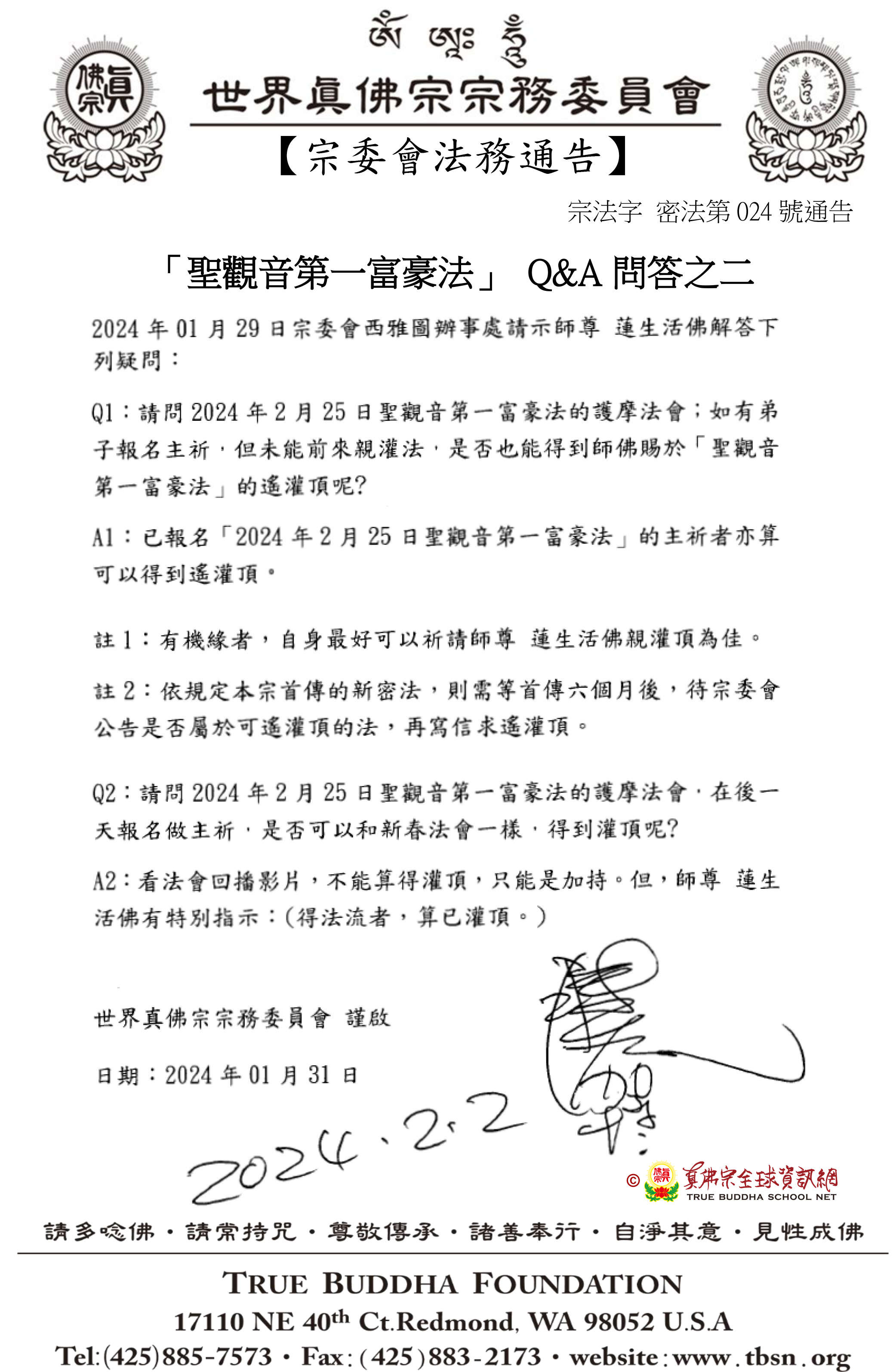 【宗委會法務通告】「聖觀音第一富豪法」 Q&A問答之二