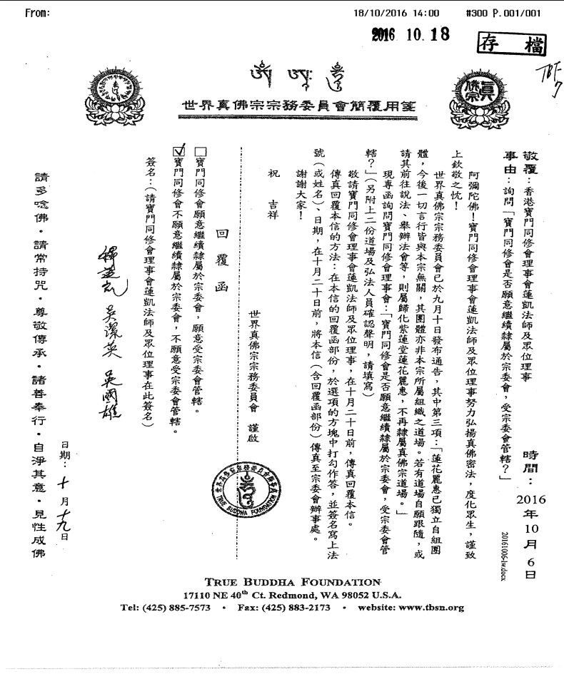 宗委會 蓮花麗惠 與本宗無關 不再是真佛宗上師